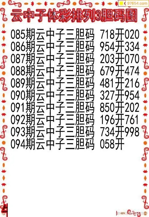 26094期云中子当天P3胆码图