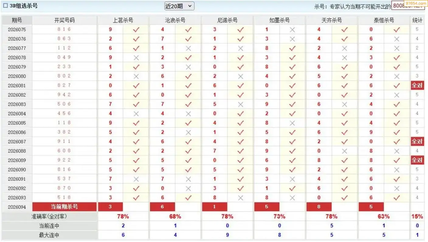 福彩3d澳客专家杀组选26年094期