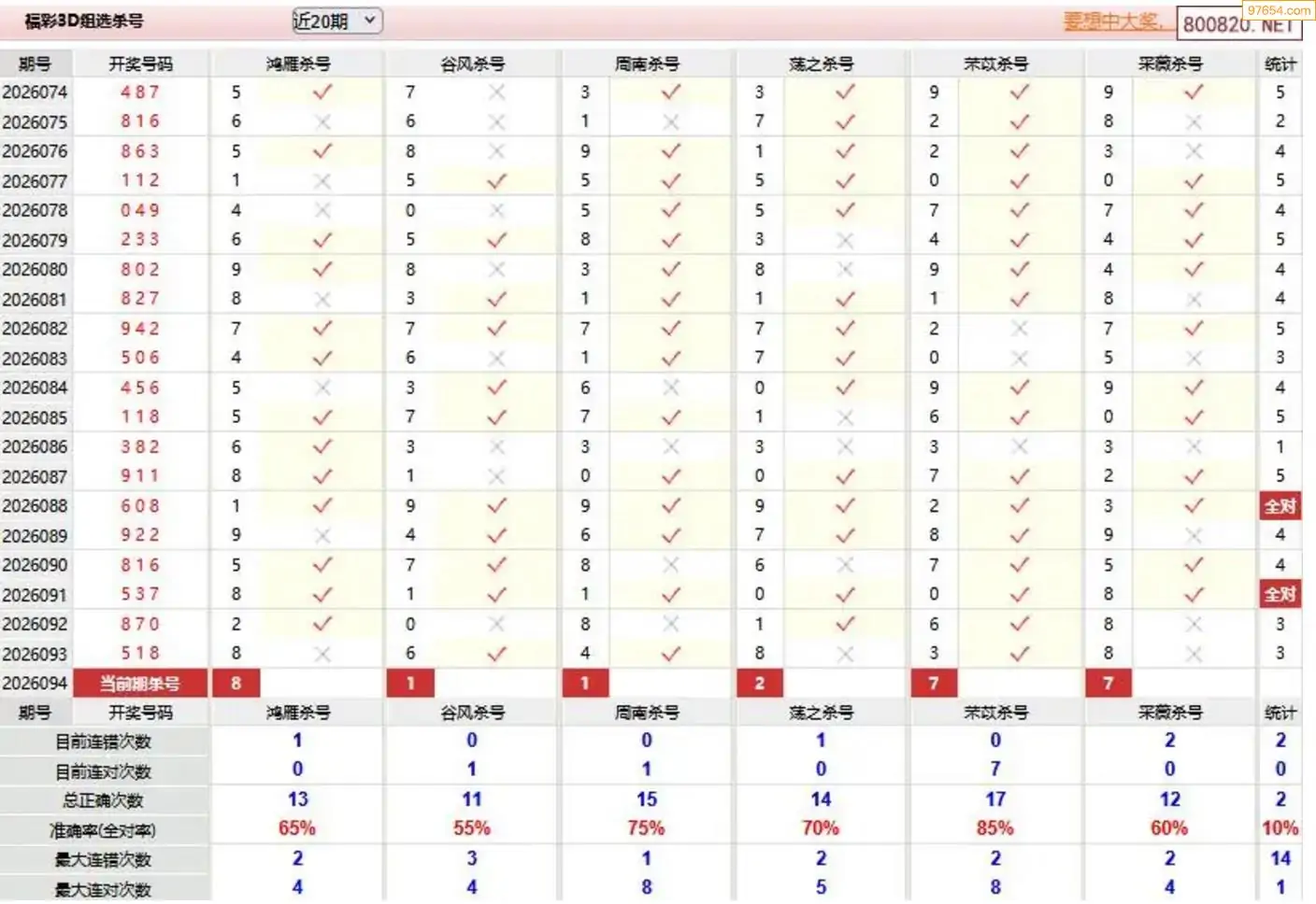 福彩3D盐都杂谈26年094期杀码猜想 6连中