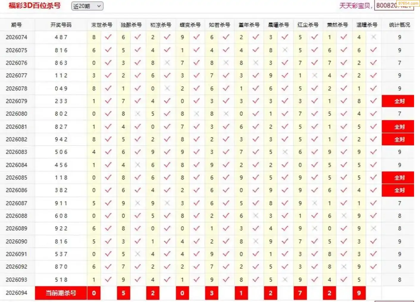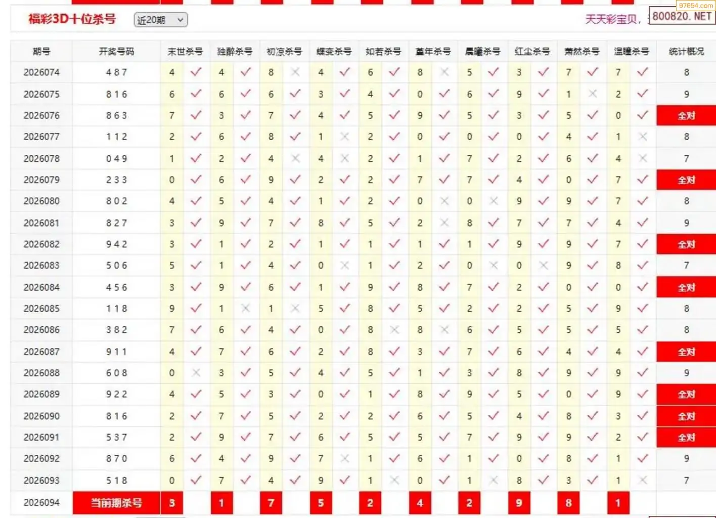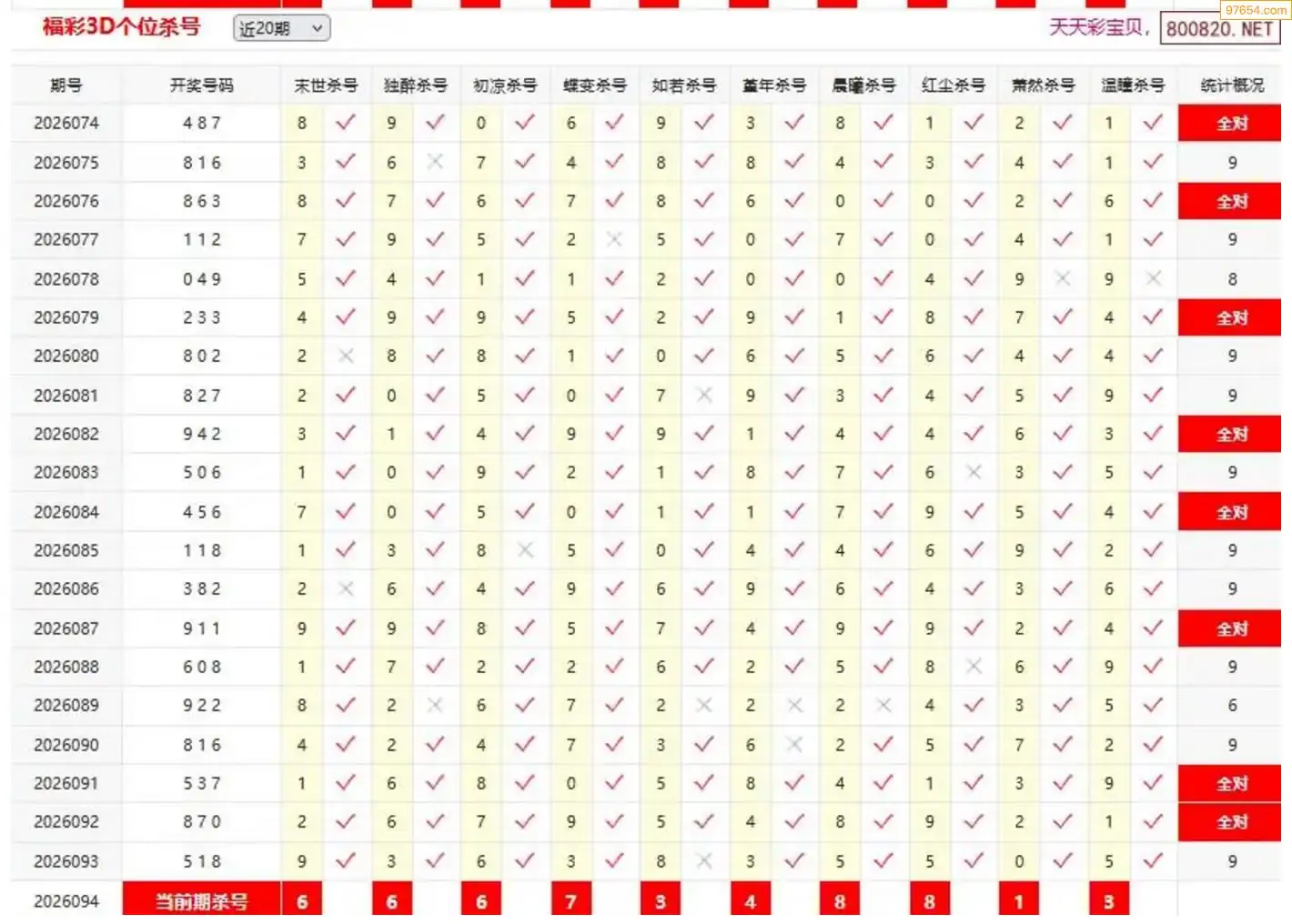 福彩3D盐都杂谈26年094期杀码猜想 6连中