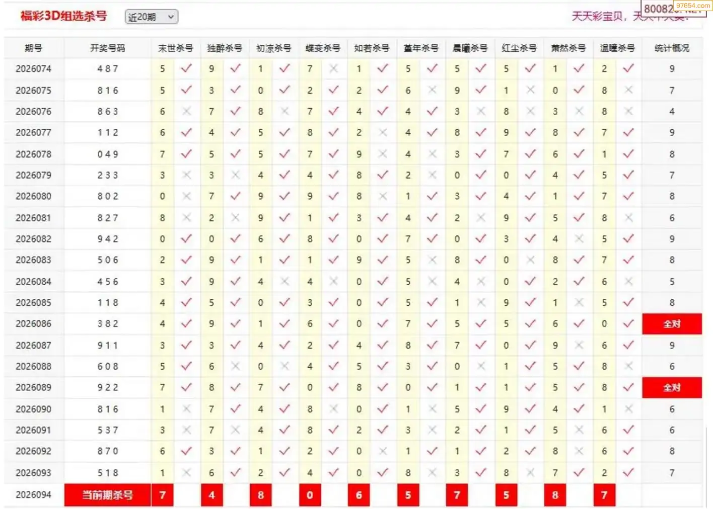福彩3d天中26年094期杀码 7连中