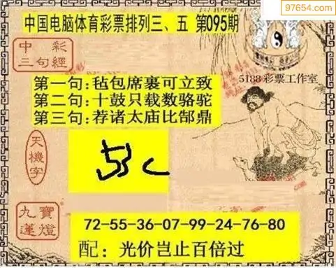 26095期玄机图谜+黄大仙济世图_体彩排列3字谜图谜汇总专辑