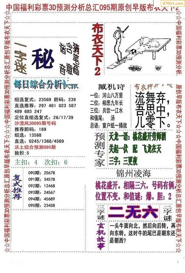 福彩3D095期天牛彩吧套图整合总汇