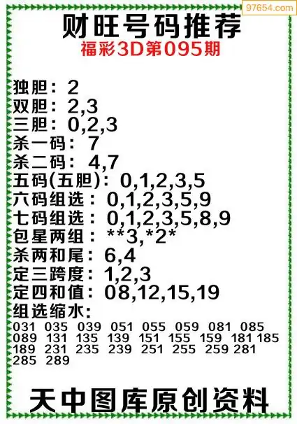 2026095期彩彩网3d原创图迷搜集(天中整理)