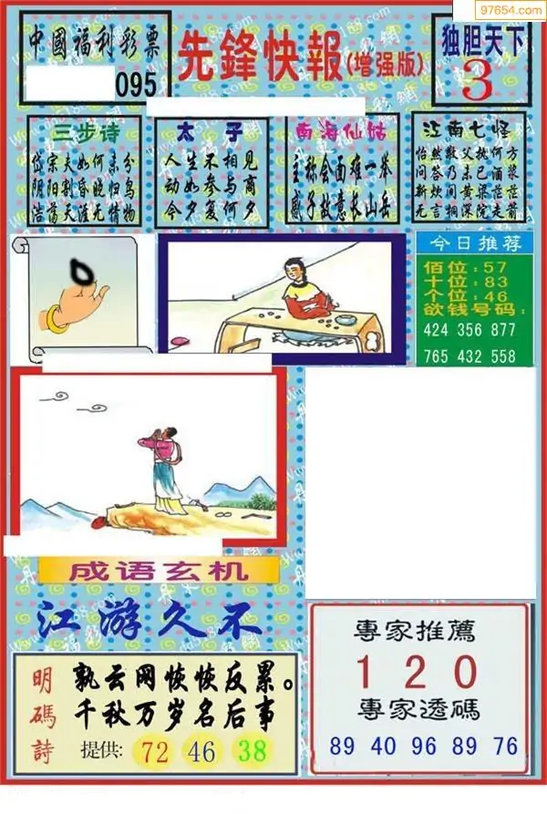 福彩3D26095期蓝仙子一句定三码图谜
