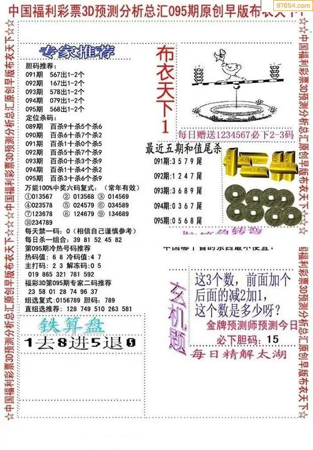 福彩095期3d真精华布衣+布衣早报(转载)