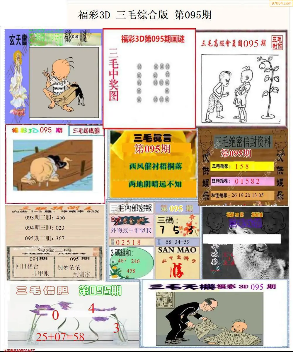 福彩3D095期天牛彩吧套图整合总汇
