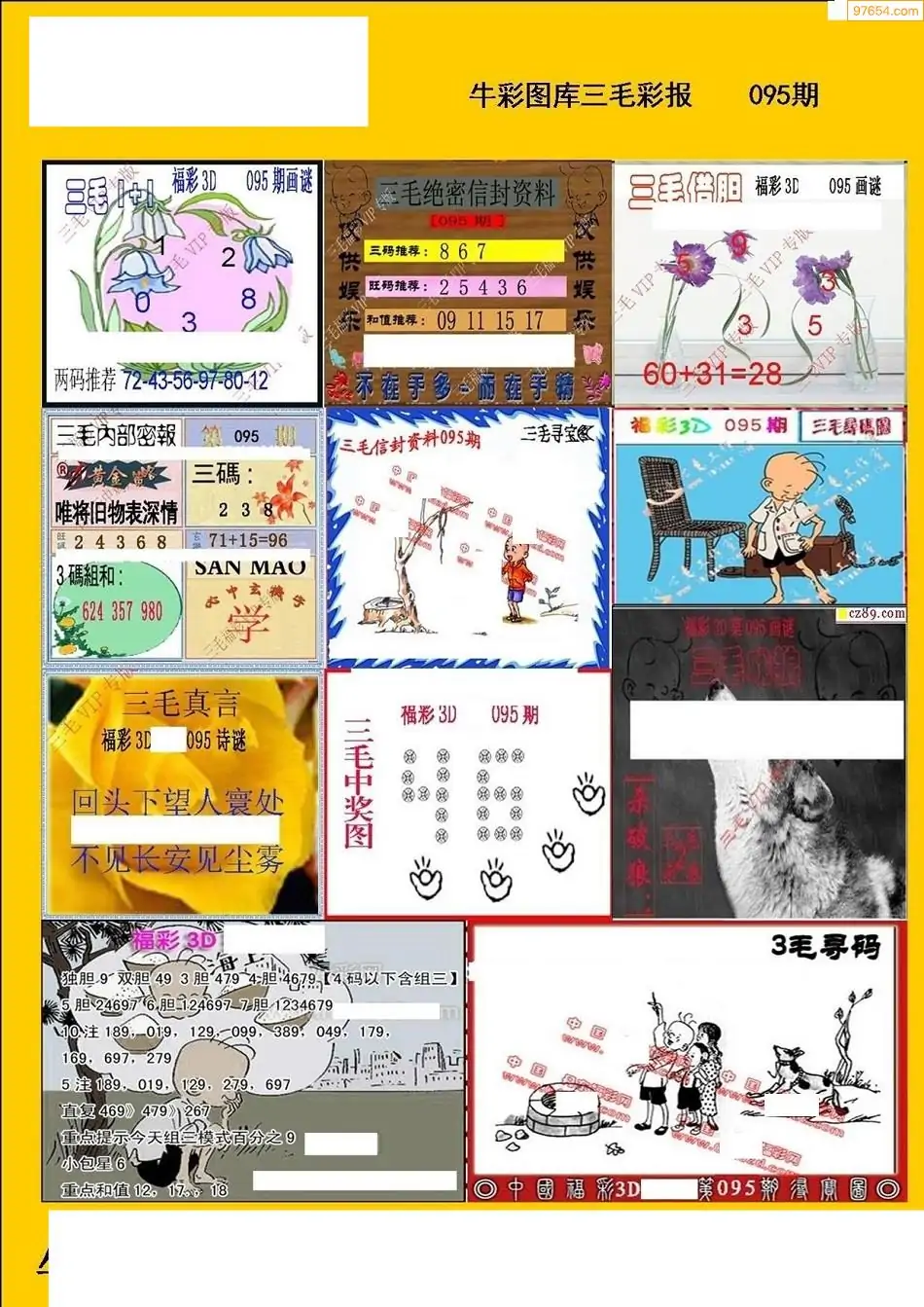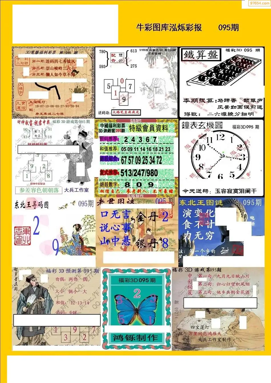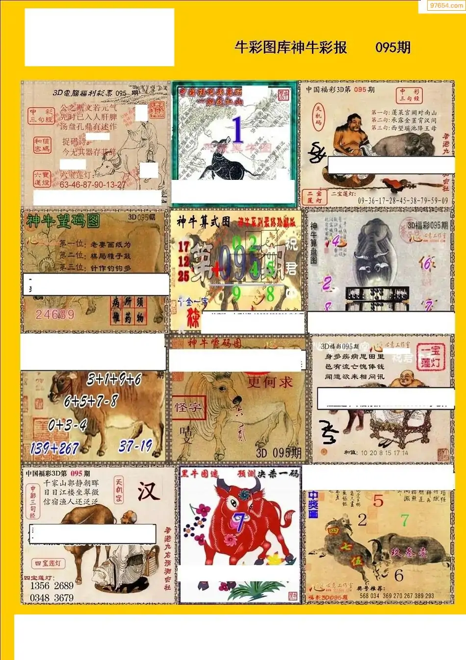 福彩3D095期天牛彩吧套图整合总汇