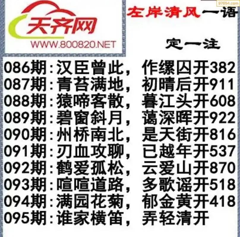福彩3d左岸清风26年095期一语定一注