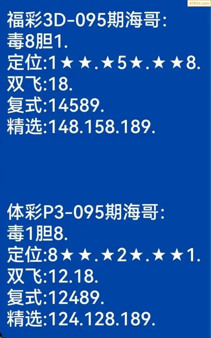 海哥福彩095期3d今日双胆