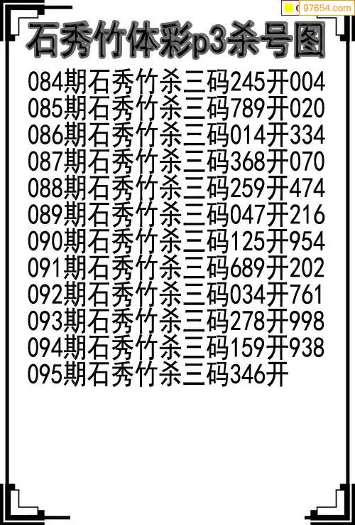 26年095期体彩p3石秀竹杀号图