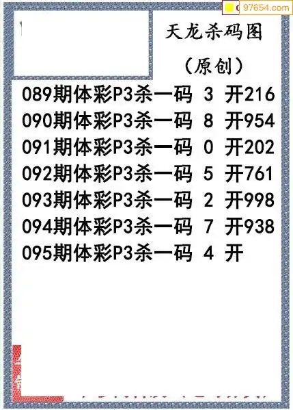 26年095期天龙体彩P3杀码图谜