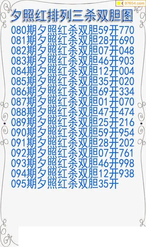 26年095期今天排三夕照红杀双胆