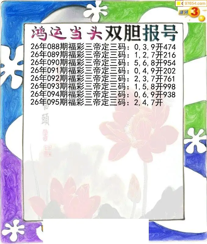 26095期鸿运当头双胆p3报号图