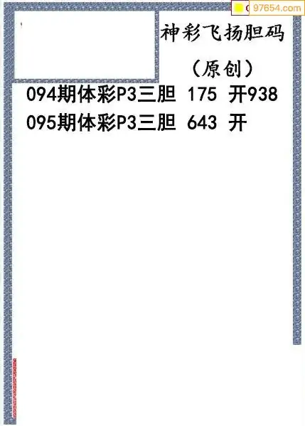 26095期神彩飞扬体彩P3三胆图谜