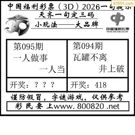 (2)26年095期本期3d图迷汇总_福彩3D图谜总汇图