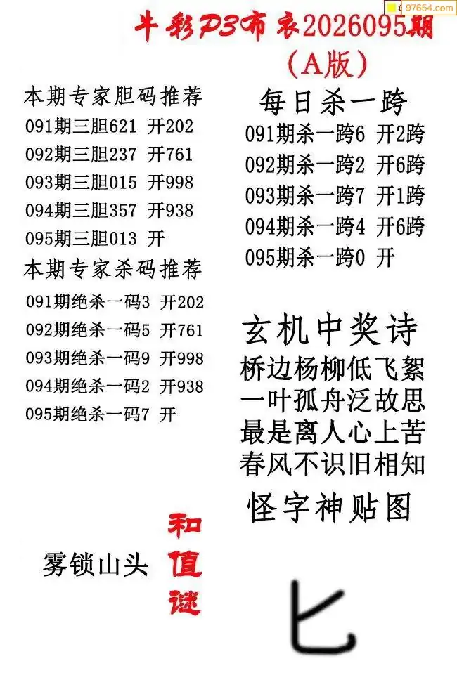 2026095期彩友图迷汇总_图迷汇总排列3图谜汇总考辑牛彩网