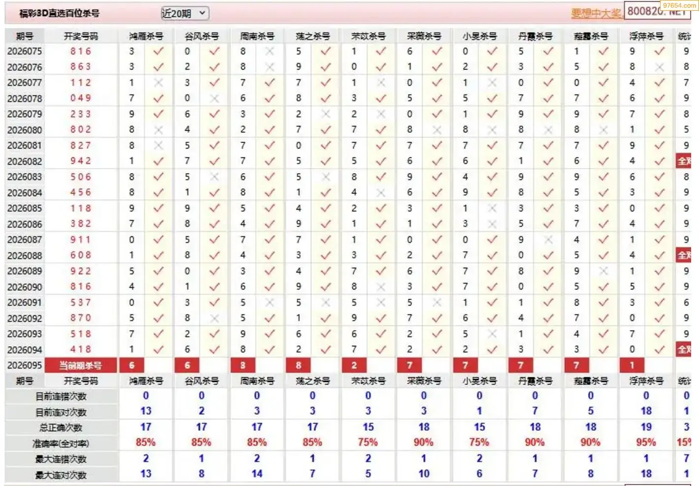 暴雨梨花095期3d本期杀码预测 8连中