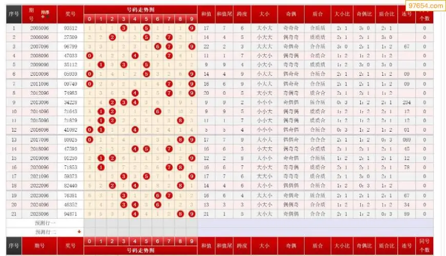 097期排列三历史号码对比图+数据走势分析