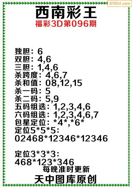 096期原创资料西南彩王当期预测