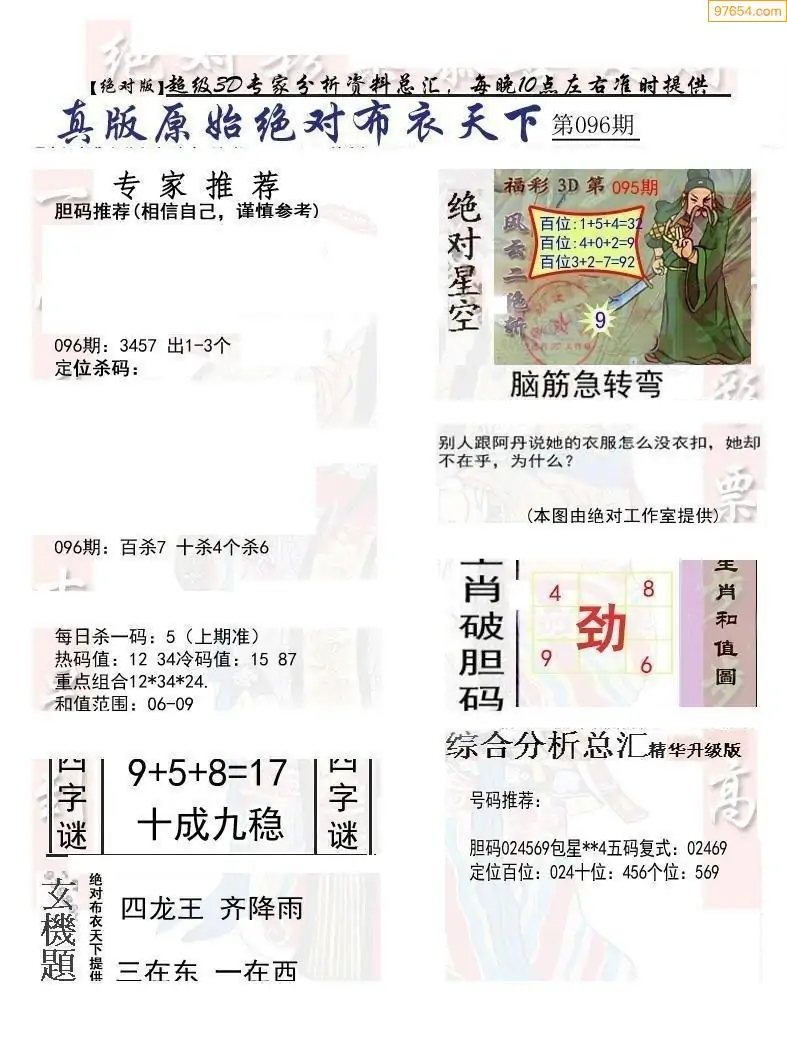26099期3d新布衣皇帝早间四版