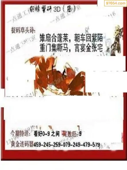 (3)2026095期3D预测总汇全图_福彩3d图谜字谜总汇