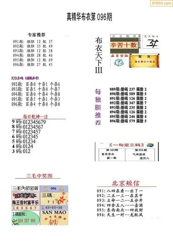 (2)26年096期本期3d图迷汇总_福彩3D图谜总汇图