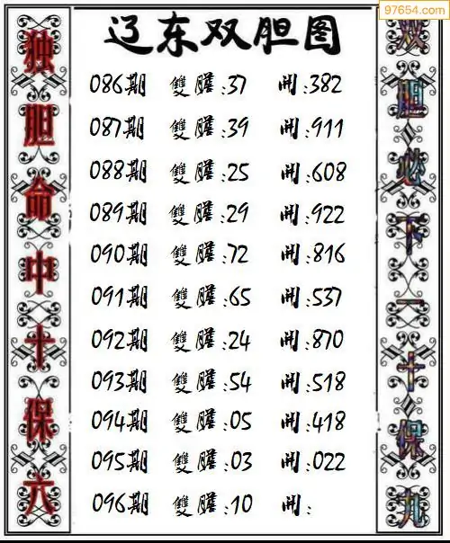 097期97654本站收集胆码出号预测
