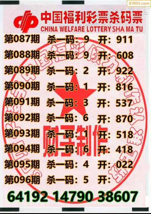 牛彩网097期福彩胆码图汇总 胆:93