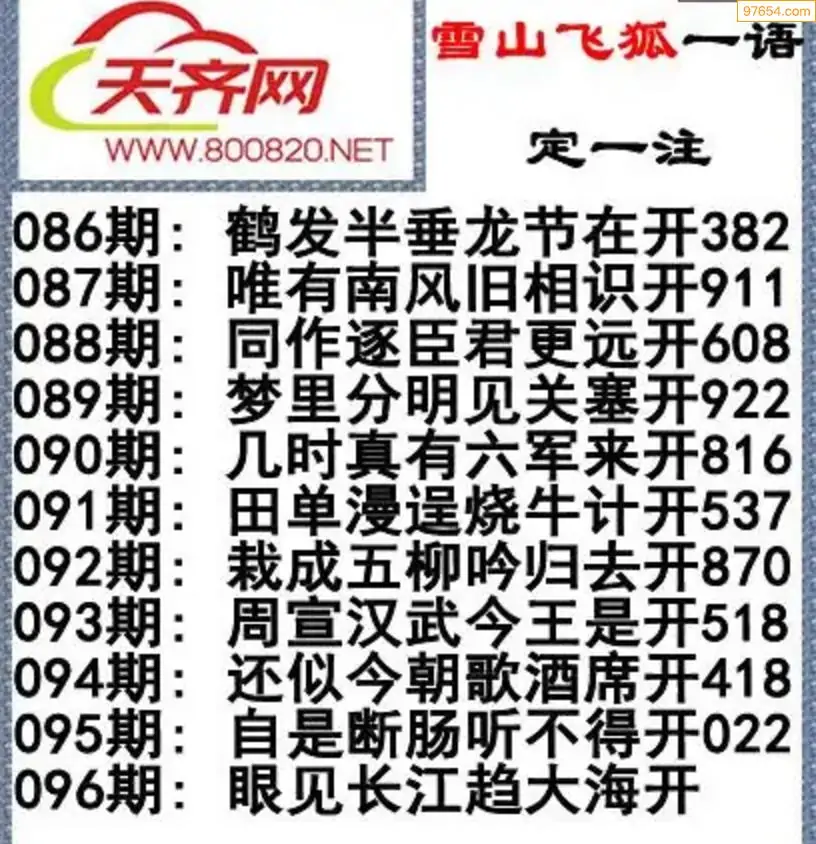 彩票3d字谜096期雪山飞狐一语定一注
