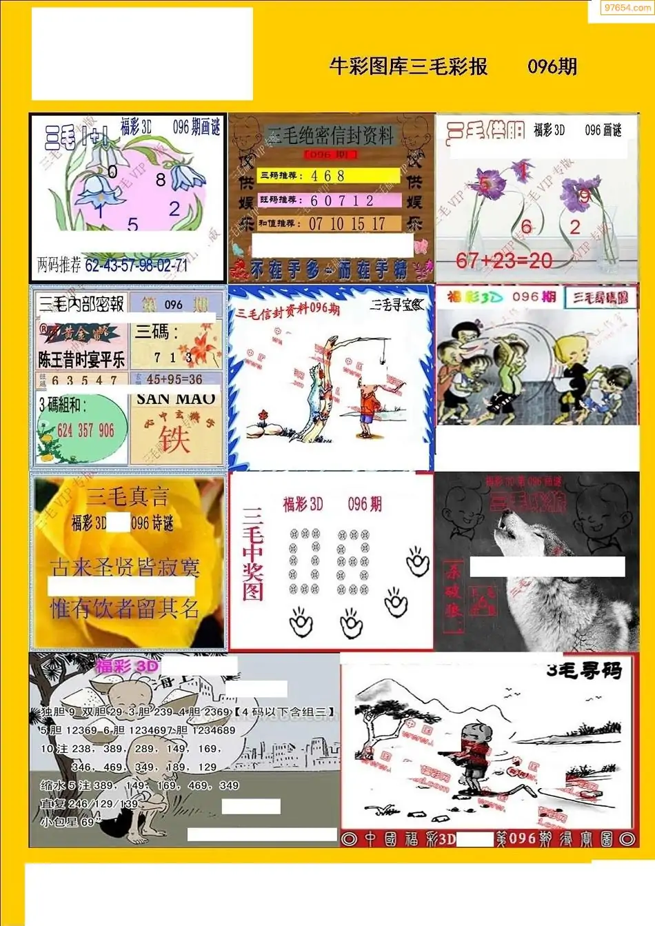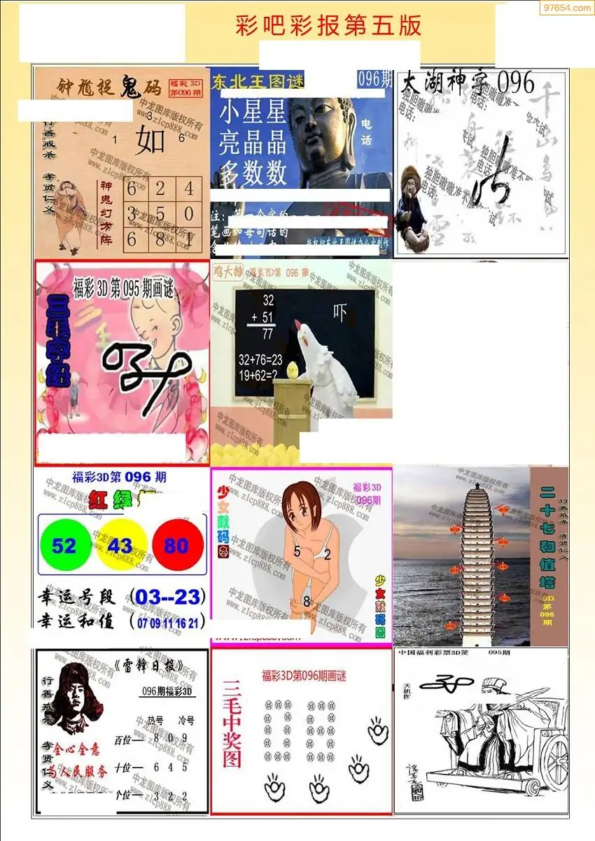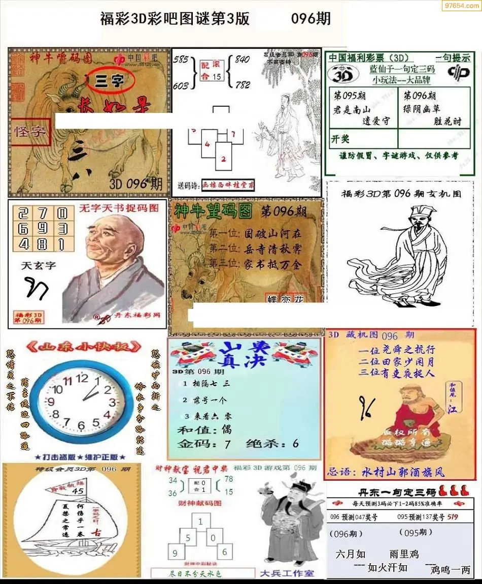 福彩3D096期天牛彩吧套图整合总汇