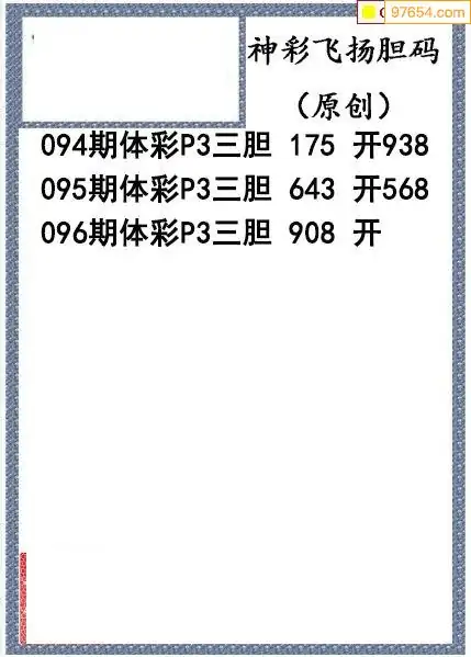 26096期神彩飞扬体彩P3三胆图谜