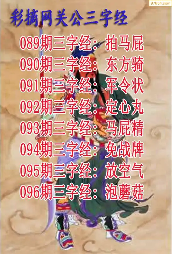 26年096期关公三字经3d图谜