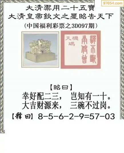 26年097期财神说彩3D综合图(原创)_3d财神到财神送胆
