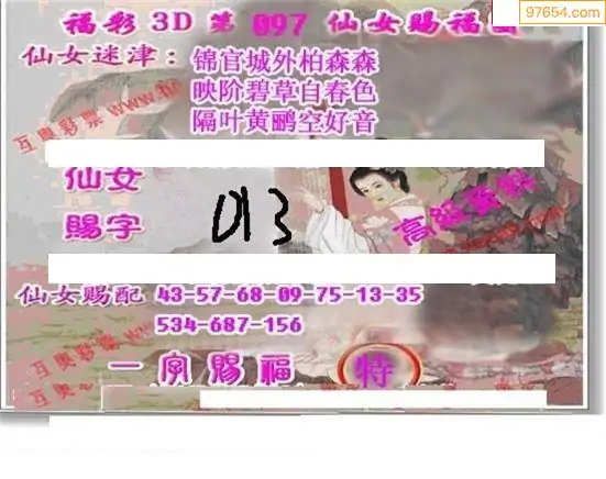 26年097期财神说彩3D综合图(原创)_3d财神到财神送胆