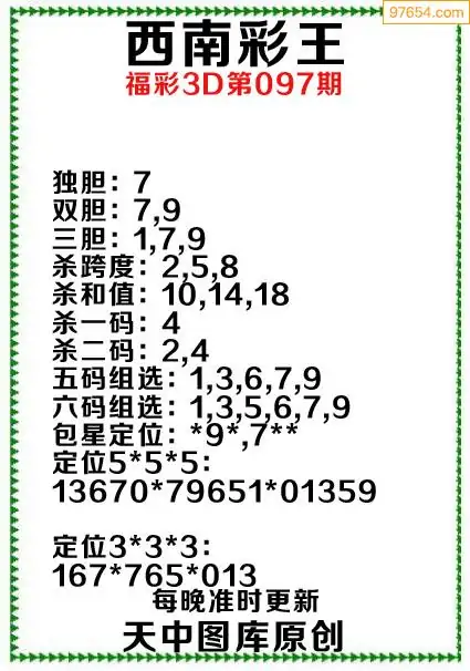 097期原创资料西南彩王当期预测