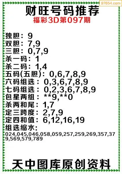 3D原创097期旺财出号推荐