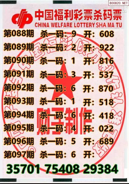 牛彩网097期福彩胆码图汇总 胆:93