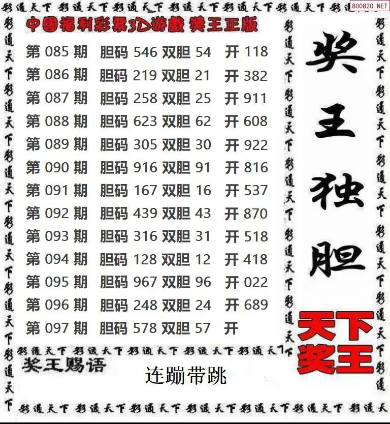26097期钱王_福彩胆码推荐