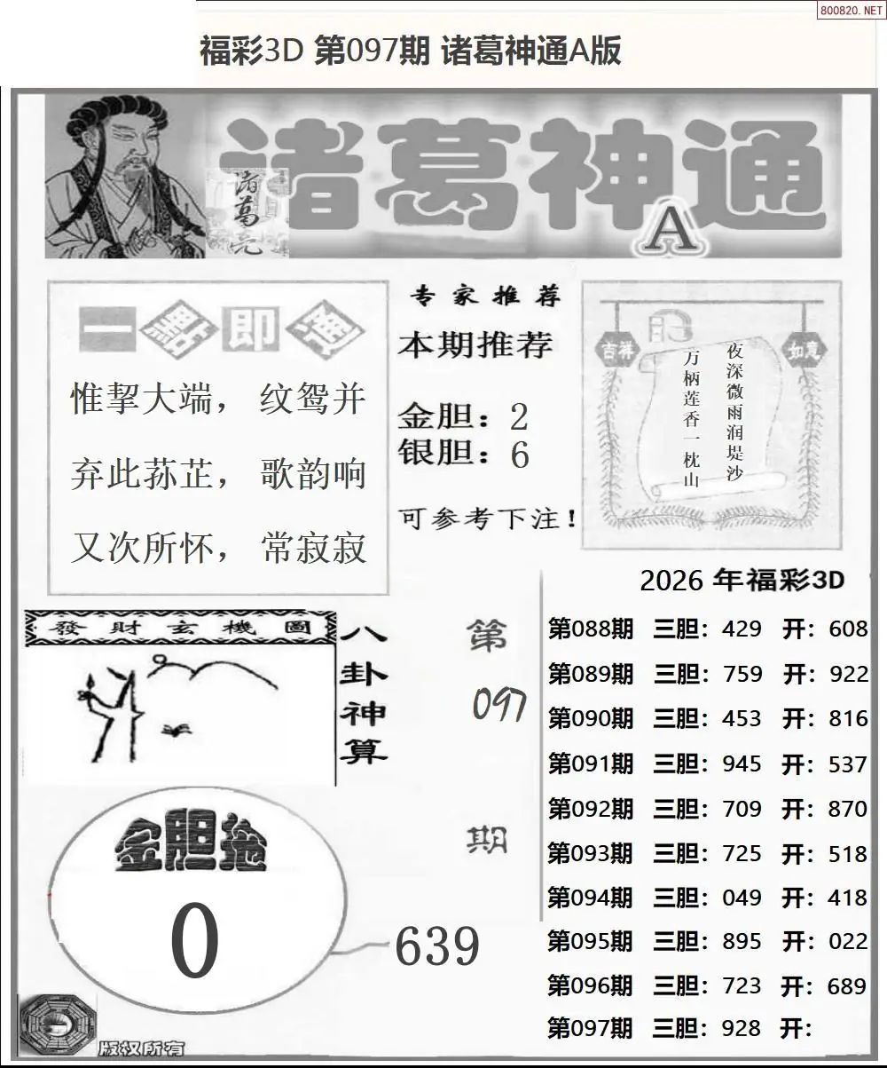 26097期福彩3D诸葛神通a