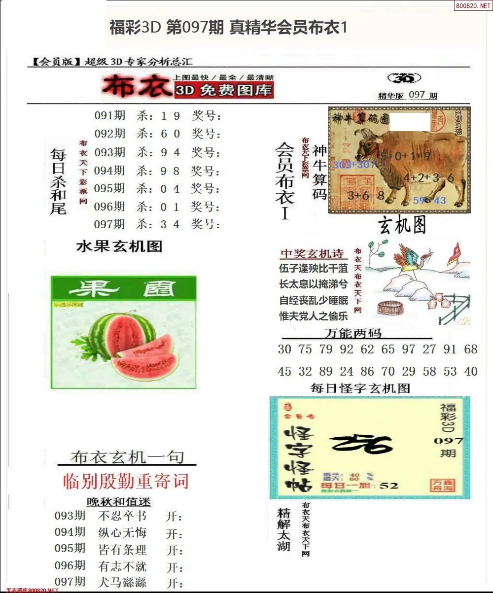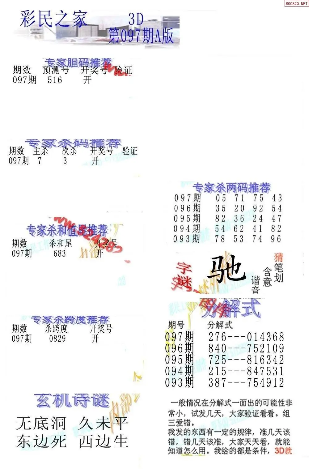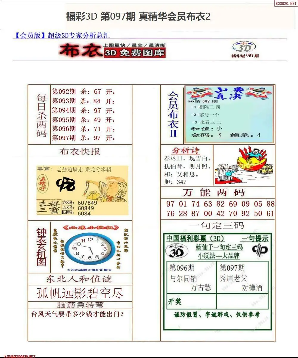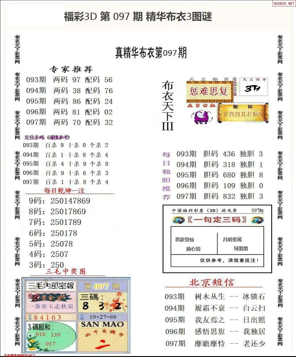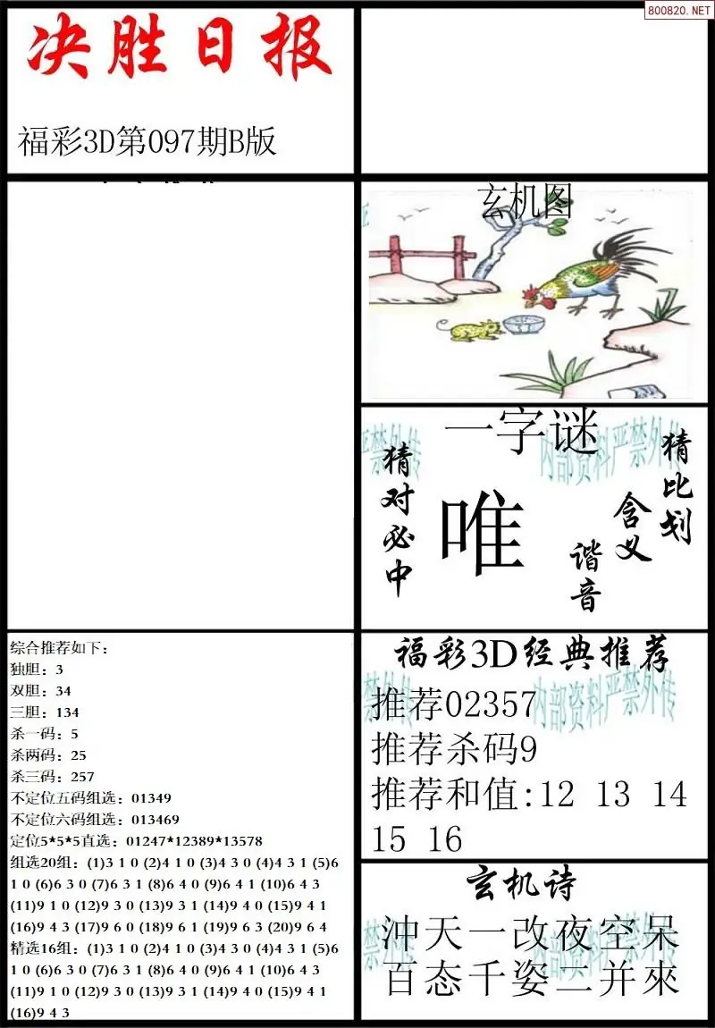 (3)2026097期3D预测总汇全图_福彩3d图谜字谜总汇