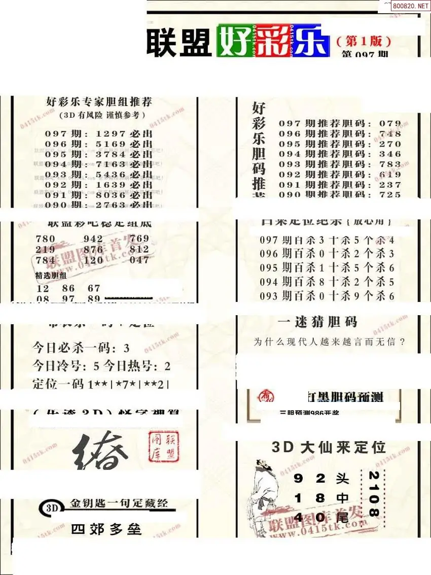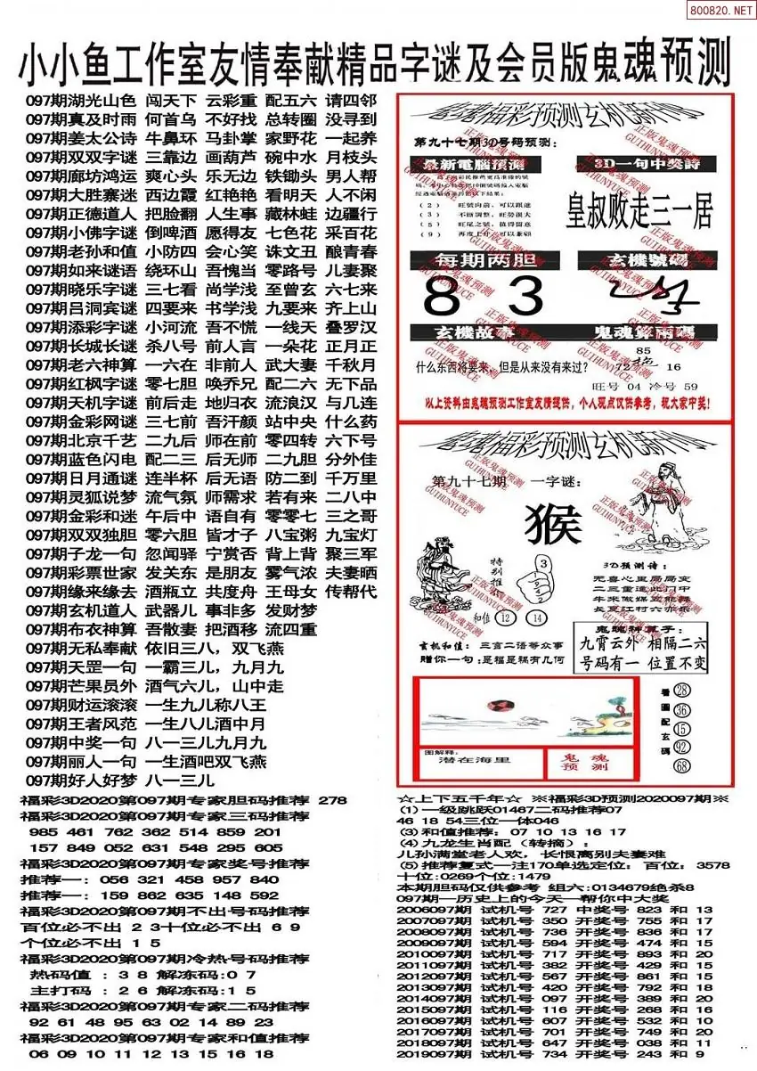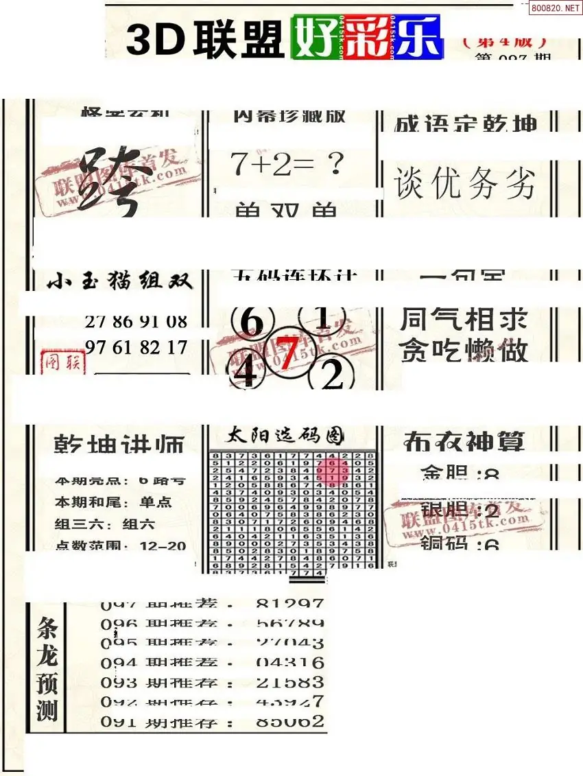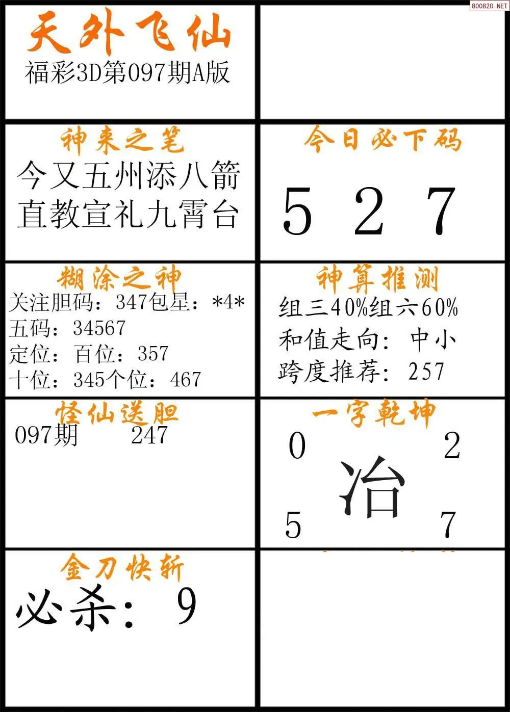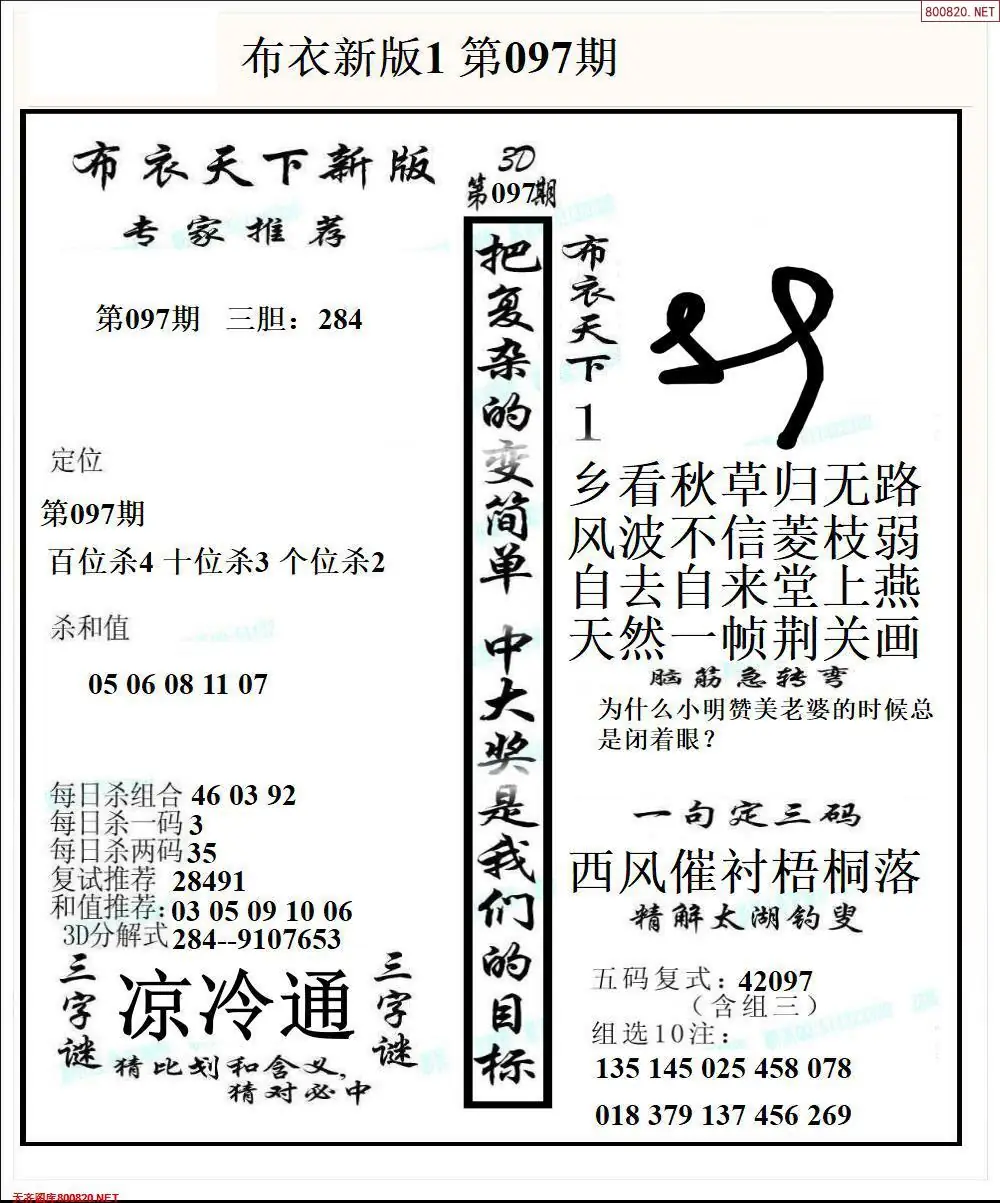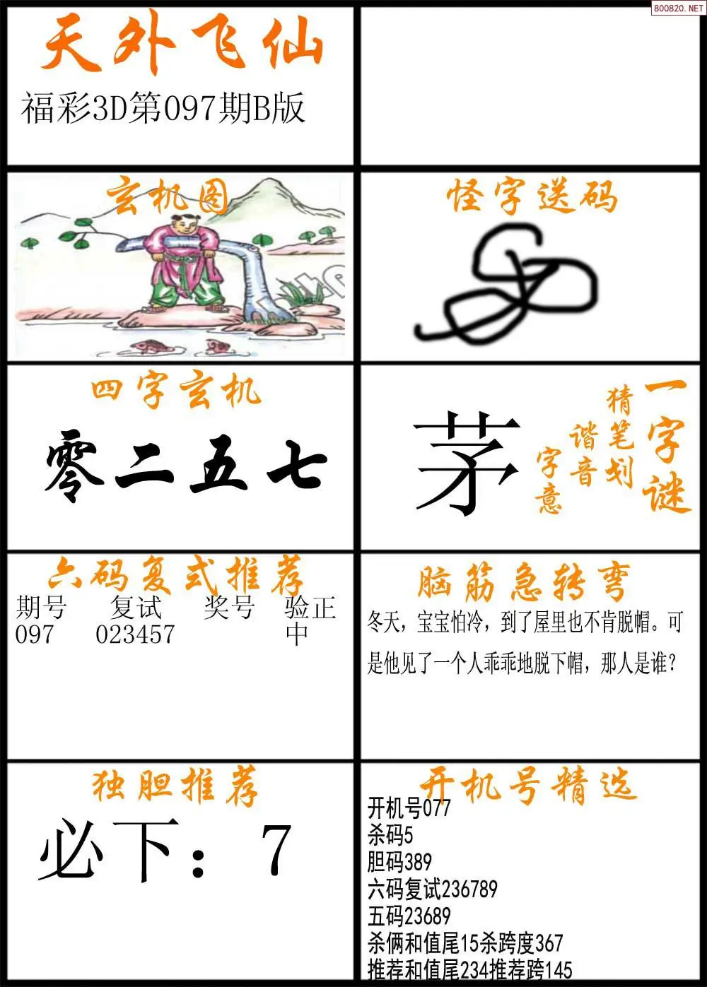 (3)2026097期3D预测总汇全图_福彩3d图谜字谜总汇