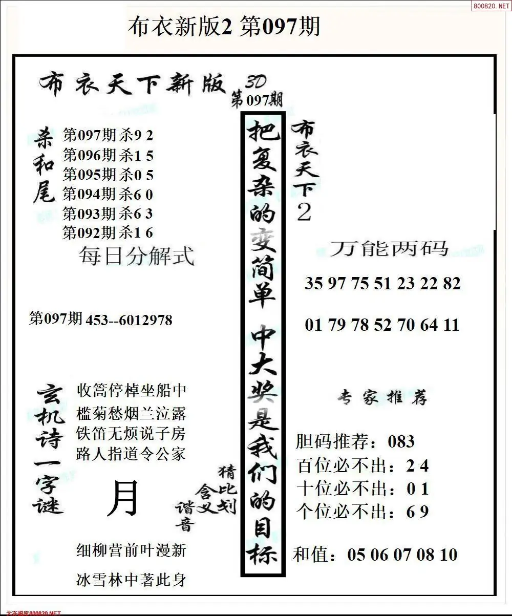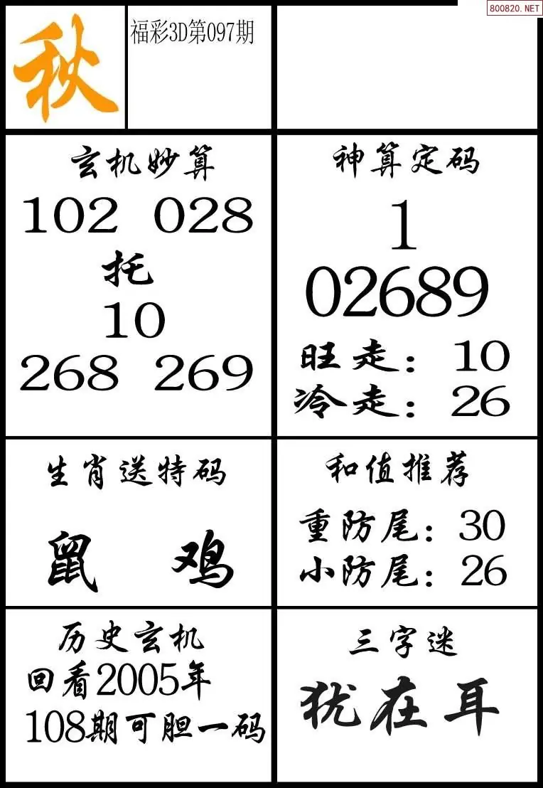 (2)26年097期本期3d图迷汇总_福彩3D图谜总汇图