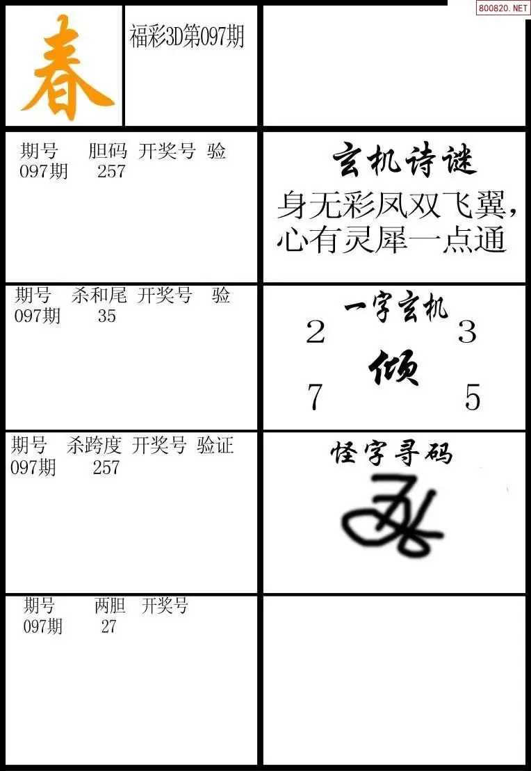 (5)26年097期福彩字谜图谜总汇