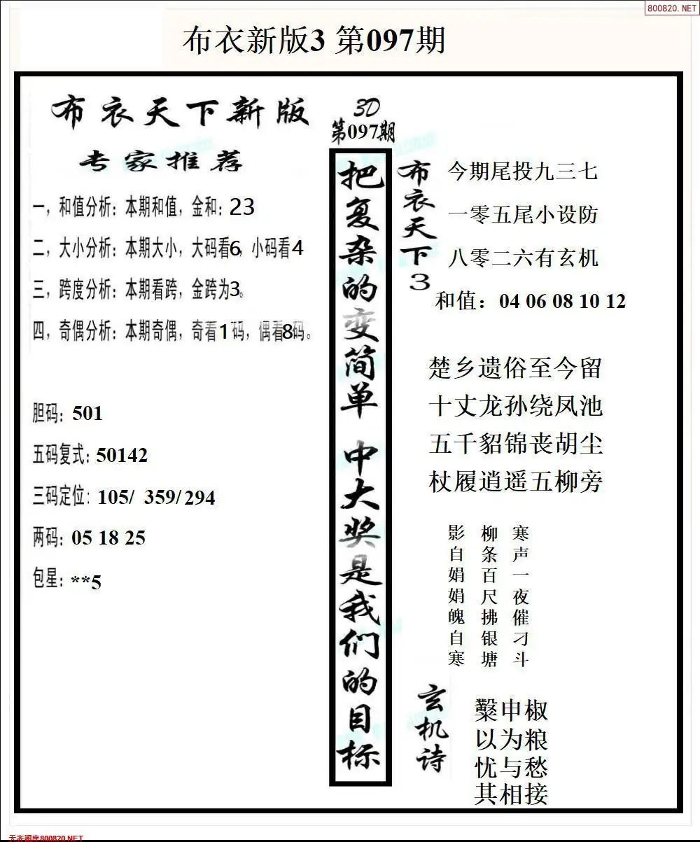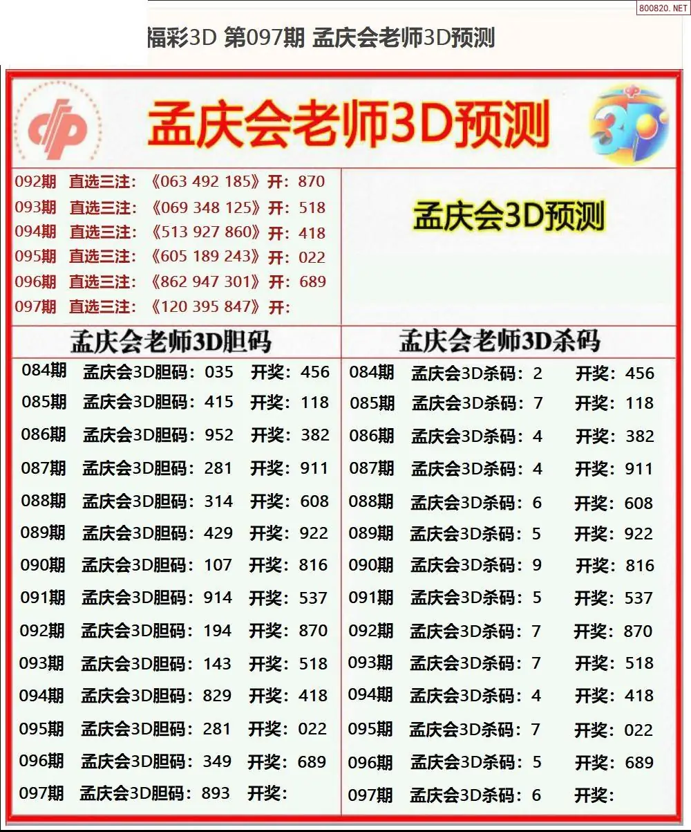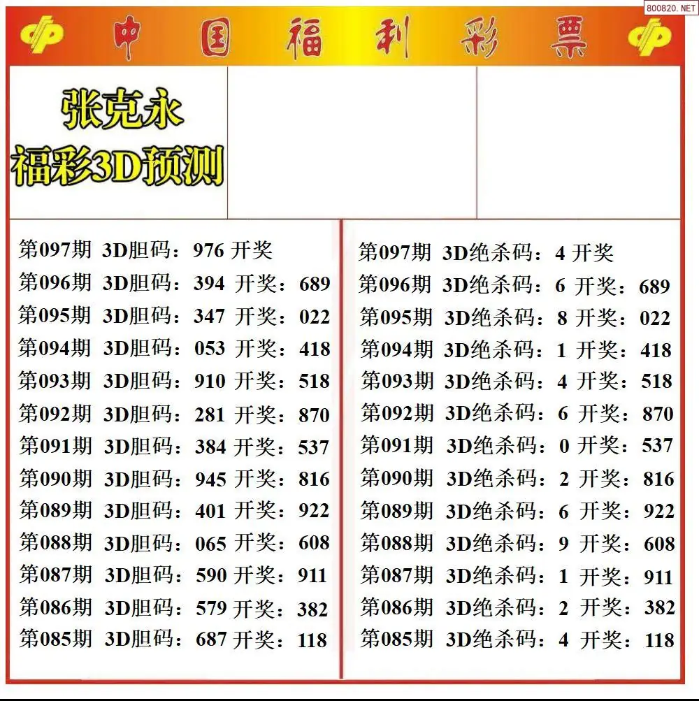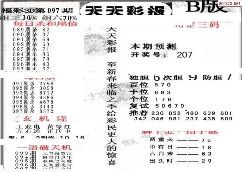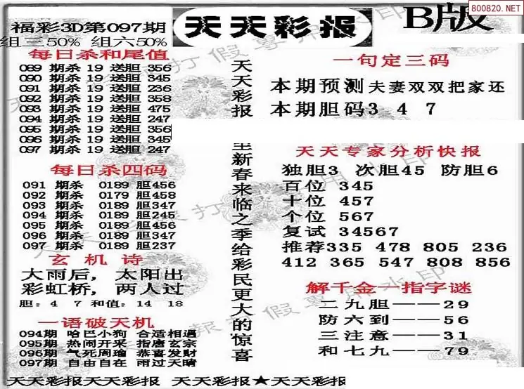 (8)26年097期今日3d各类彩报汇总