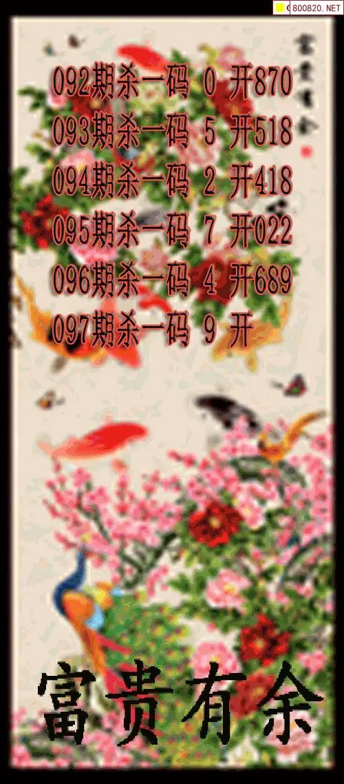 2026096期福彩火麒麟杀码图