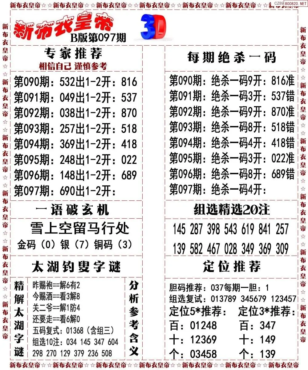 26099期3d新布衣皇帝早间四版