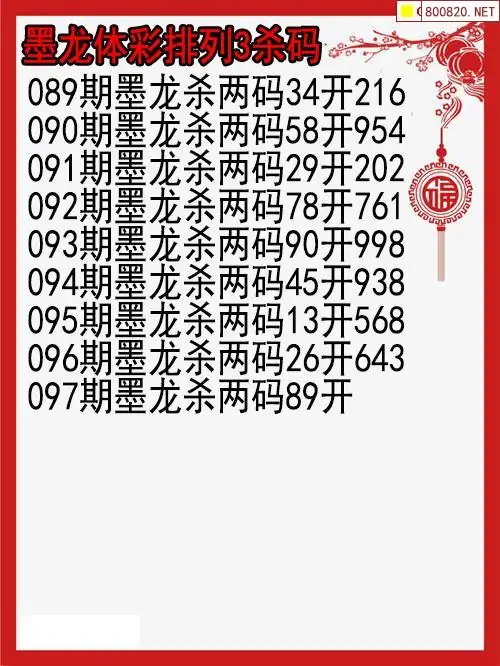 26年097期墨龙体彩排列三杀码图