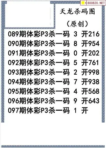26年097期天龙体彩P3杀码图谜
