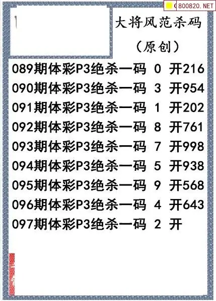 26年097期大将风范p3杀码体彩图谜